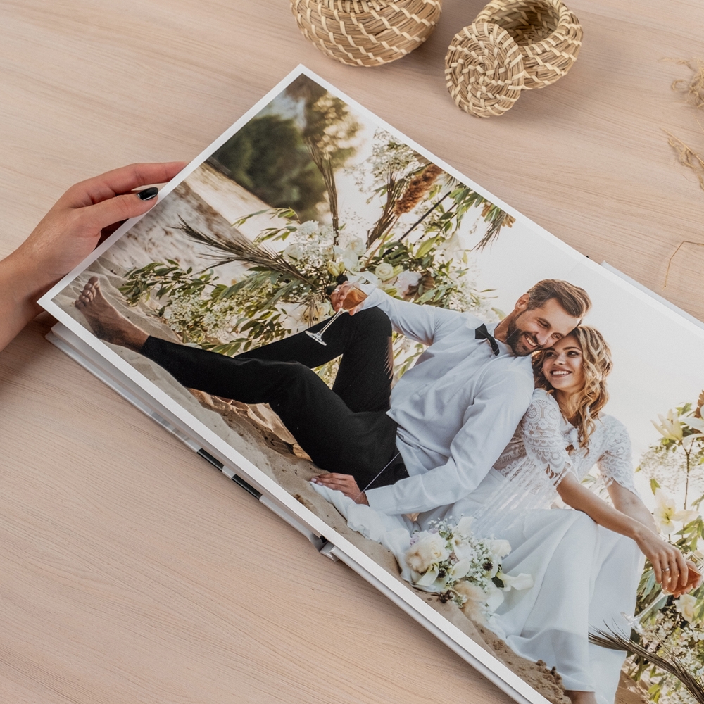 Os Álbuns de Fotos Dreambooks possuem abertura panorâmica, permitindo que seja colocada uma foto em destaque a ocupar ambas as páginas. Esta característica permite que tenhas uma visualização perfeita sobre as tuas fotografias, sem cortes nem partes ocultas.